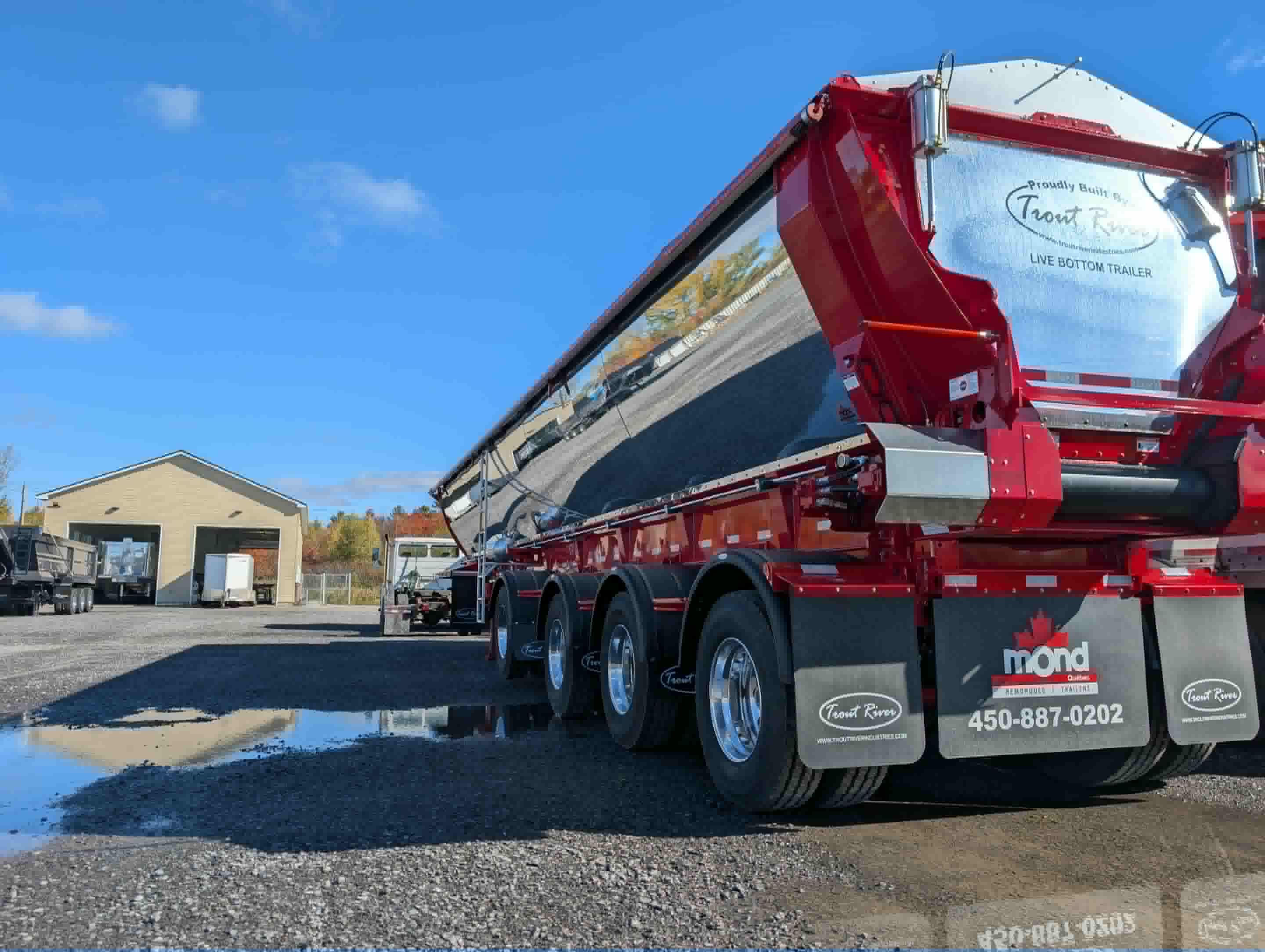 La boîte arrondie a un centre de gravité plus bas, elle favorise également une charge uniformément répartie, ce qui équivaut à une charge maximale à la fin de la journée. Notre fond mobile est également inférieur de deux (2) pieds à tous nos concurrents ce qui réduit l’inquiétude causée par les lignes aériennes ou les godets de chargeur. Le fond mobile de Trout River est le plus sûr sur le marché aujourd’hui.
